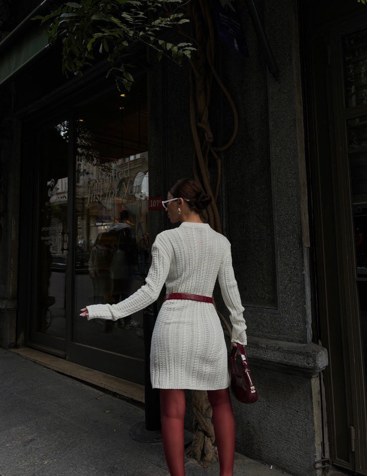 | Στυλ & Vibe | Cozy Edgy / Street Style Statement. Ένα φόρεμα που συνδυάζει την παραδοσιακή, ζεστή αίσθηση του χειμωνιάτικου πλεκτού με μια δυναμική, μοντέρνα λεπτομέρεια (τα κορδόνια) και έντονο styling. |
